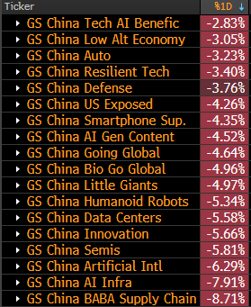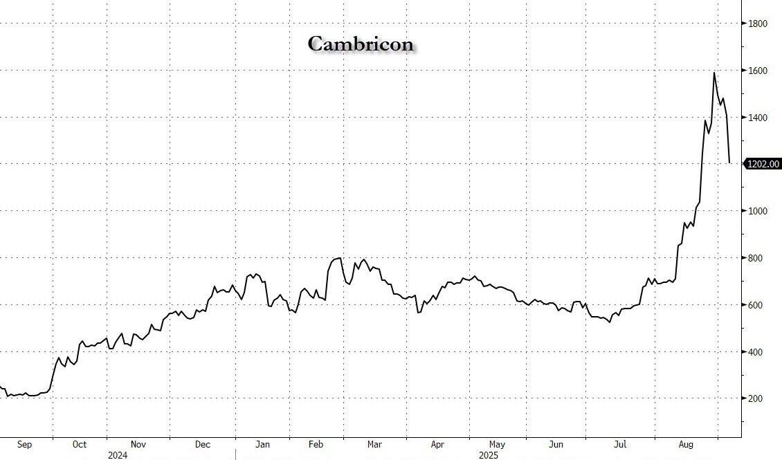 Cambricon (which we profiled two weeks ago as China's Nvidia) sank 14.5% on the day, bringing its YTD gains to just +82.7%