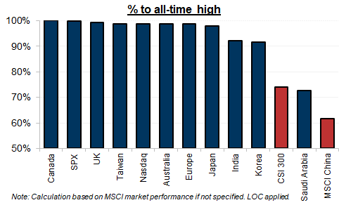 This chronic U/W to China could trigger a flurry of inflows from global allocators, especially with other major markets trading close to ATHs