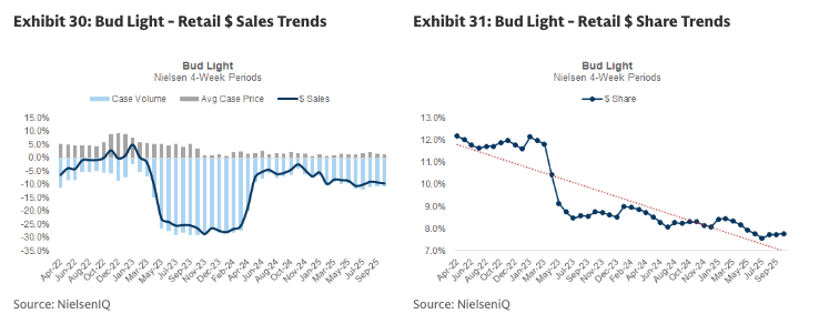 Total alcoholic beverage sales fell -3.9% in the 2 weeks ending 9/20/25, consistent with prior 4- and 12-week declines.