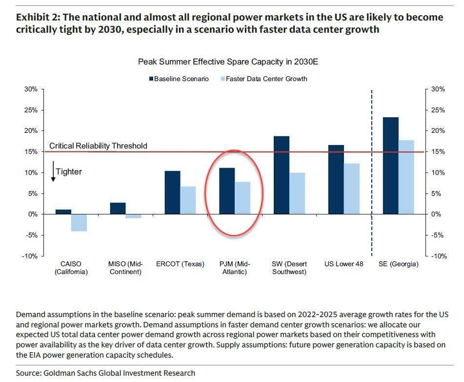 The market monitor contends that PJM Interconnection - the largest power grid in the United States, which runs the grid and wholesale power markets in 13 Mid-Atlantic and Midwest states and the District of Columbia and serves 65 million customers - has the authority to require that large new data centers wait in a queue to be added to the system until there is adequate generation and transmission to serve those facilities, according to the complaint.